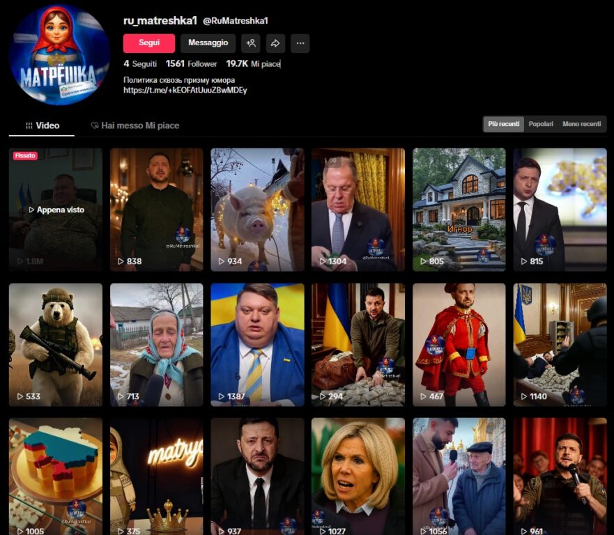La bio del profilo TikTok risulta esplicita e definisce i contenuti come «politica vista attraverso il prisma dell’umorismo».