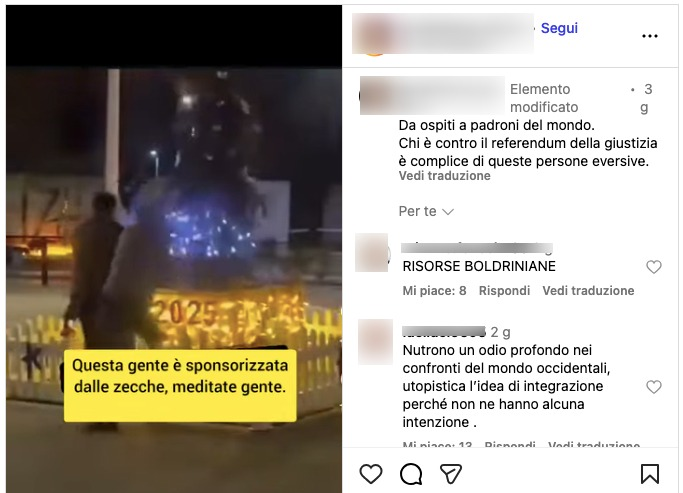Senza contesto la stessa scena, un anno dopo, è stata diffusa in Italia dove molti utenti l’hanno interpretata come un attacco alla società italiana, collegandola a questioni politiche interne. L’uso di frasi come “da ospiti a padroni del mondo” o riferimenti al referendum sulla giustizia mostrano come il contenuto sia stato manipolato per suscitare l’indignazione degli utenti.