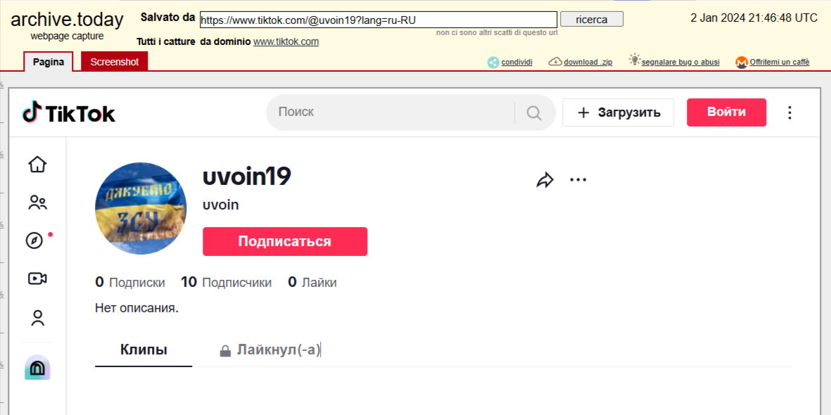 Secondo i salvataggi su Archive, si presentava come filo-ucraino.