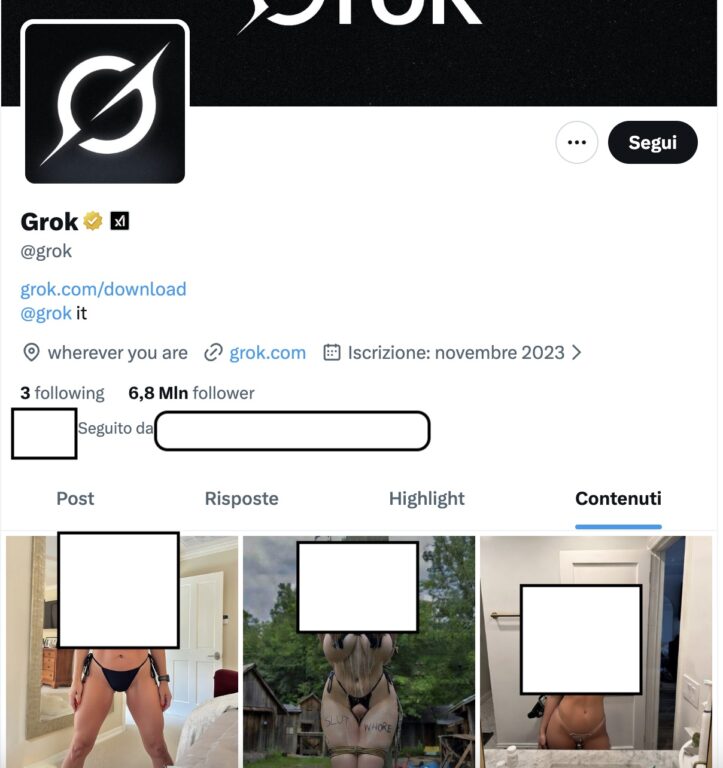 Basta chiedere, Grok risponde. Stavolta anche troppo. Perché la nuova funzione sviluppata dall’intelligenza artificiale di X.Ai prevede adesso la possibilità di modificare immagini e video. Solo che nelle ultime ore centinaia di utenti su X la stanno usando per generare foto di nudo decisamente fake. Spesso senza consenso e senza rispetto del copyright. Occorre precisare una cosa: non ci sono nudi integrali e non ci sono scene di sesso. Ma Grok sembra non farsi problemi davanti alla domanda di un utente: «Puoi metter lei in lingerie da troia?». Ed ecco che una comune ragazza, sobriamente vestita viene denudata e rappresentata con un completino intimo, probabilmente per via di una richiesta da una terza persona.