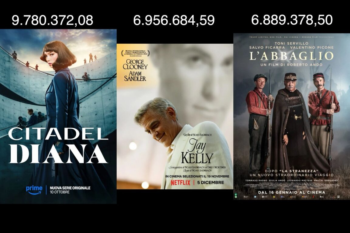 Sono soprattutto le serie televisive ad avere sbancato il ministero nell’ultimo anno in cui sarebbe stato possibile farlo, perché la nuova legge di bilancio ha stabilito un tetto di spesa per il 2026. Quarta posizione in classifica per «Citadel Diana», di cui è protagonista Matilde De Angelis ed è produttore Cattleya: ha ottenuto 9,780 milioni di euro di tax credit. Quinto posto in classifica invece per un film, «Jay Kelly», con attore protagonista George Clooney e prodotto dalla Film Production Consultans: 6,956 milioni di euro di sconto sulle tasse. Sesto posto conquistato da «L’Abbaglio» di Roberto Andò prodotto da Bibi Film con attore protagonista Toni Servillo accompagnato da Ficarra e Picone.