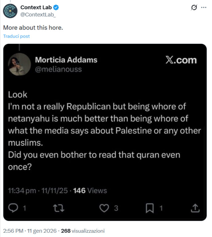 Le accuse partono da un post dell’account X @ContextLab_ del 10 gennaio 2026 che afferma: