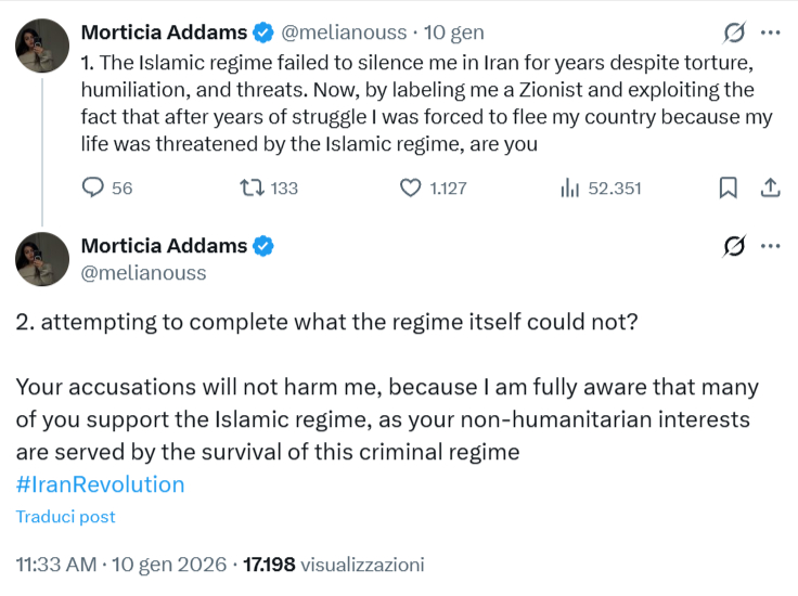 La stessa ragazza ha risposto alle accuse su X, raccontando come il regime iraniano abbia tentato di farla tacere per anni e di essere stata costretta a fuggire dal suo Paese: