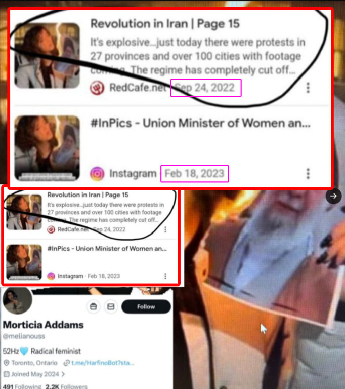 - La donna ritratta è un’attivista iraniana in esilio, non una canadese estranea ai fatti.