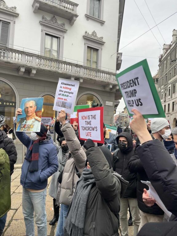 «Morte al Dittatore!», «Make Iran Great Again», «Torni Pahlavi!». Mentre si stringe la morsa degli Ayatollah sui manifestanti che da ormai oltre due settimane riempiono le strade dell’Iran, a scendere in piazza per spingere il crollo del regime sono anche gli iraniani all’estero. Inclusa la diaspora che vive in Italia. A Roma come a Milano sono centinaia, tantissimi giovani, ma non solo, e si sgolano come forse non mai nel momento in cui vedono per la prima volta a portata di mano la possibilità che il regime teocratico crolli sotto il peso del dissenso. Nel capoluogo lombardo il luogo scelto per la manifestazione, sotto lo sguardo vigile di polizia e Digos, è il consolato americano. Inequivocabile il messaggio. «Trump, agisci ora!» gridano a più riprese rivolti a quella bandiera Usa che sventola dal palazzone di Turati. Mentre il fiume di dimostranti s’ingrossa e la folla prende coraggio, sui telefonini di qualcuno rimbalza l’annuncio che il presidente Usa ha appena dato in mondovisione a modo suo, su Truth. «Prendete il controllo delle istituzioni, stiamo per aiutarvi», manda a dire Trump. Un ragazzone col cappuccio si fa largo tra la folla e legge, quasi urla il testo del messaggio. È un boato di approvazione. La diaspora spera, prega. Anche se su cosa esattamente dovrebbero fare gli Usa non tutti sono d’accordo.
