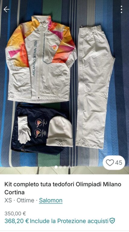 In rete si vendono tute, guanti e berretti dei tedofori delle Olimpiadi di Milano-Cortina. Prezzi da capogiro per un set completo
