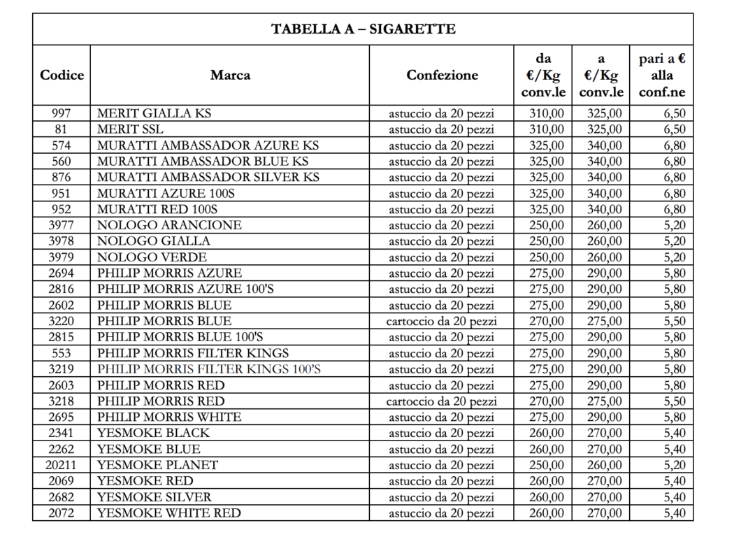 Scattano oggi gli aumenti delle sigarette che garantiranno all’erario un ingresso di ben 15 miliardi. Sono previsti aumenti fino a 30 centesimi per le Philip Morris mentre le Marlboro costeranno 6,80 euro a pacchetto. Nelle casse dello Stato, per questo 2026, arriveranno circa 900 milioni in più. Gli aumenti coinvolgono anche i sigari ed il tabacco trinciato. Escluse invece il trinciato riscaldato. Sul sito agenzia dogane e monopoli sono indicati i vari rincari, per ora inferiori rispetto a quelli ipotizzati in fase di discussione di manovra.
