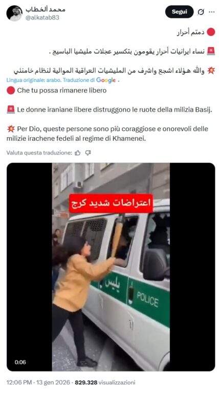 Come possiamo notare dal post X di Free4future, a diffondere la scena è un account di Muhammad Al-Khattab, il quale si presenta come «ricercatore e analista politico strategico specializzato in terrorismo all’interno del regime persiano».