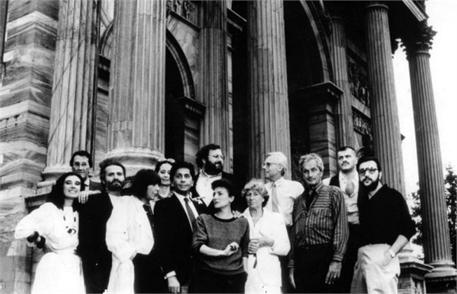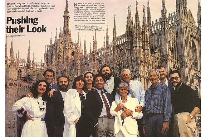 Nell’immagine compaiono realmente, da sinistra, Laura Biagiotti, Mario Valentino, Gianni Versace, Krizia, Paola Fendi, Valentino Garavani, Gianfranco Ferrè, Mila Schön, Giorgio Armani, Ottavio Missoni, Franco Moschino e Luciano Soprani. Lo scatto originale risale al 1985 ed è opera della giornalista di moda Adriana Mulassano. Di fatto, non venne realizzato davanti alle guglie gotiche del Duomo, ma ai piedi dell’Arco della Pace.