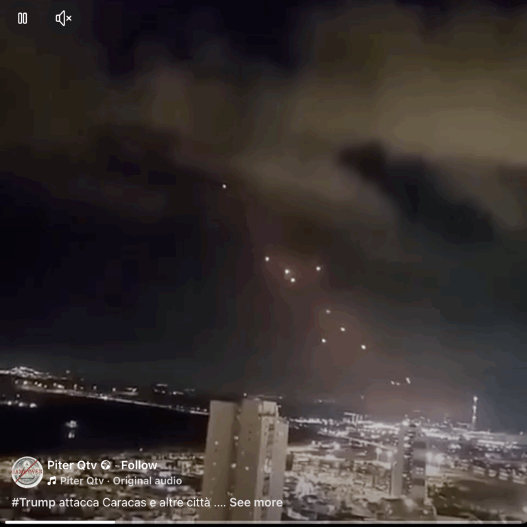 Circola in diverse condivisioni Facebook una clip dove si vedrebbero dei bombardamenti americani a Caracas in Venezuela, durante il blitz che ha portato alla cattura di Nicolàs Maduro. È vero che il Presidente venezuelano è stato rapito durante un’operazione militare che ha richiesto anche attacchi dal cielo, ma la clip in oggetto riguarda un altro contesto.