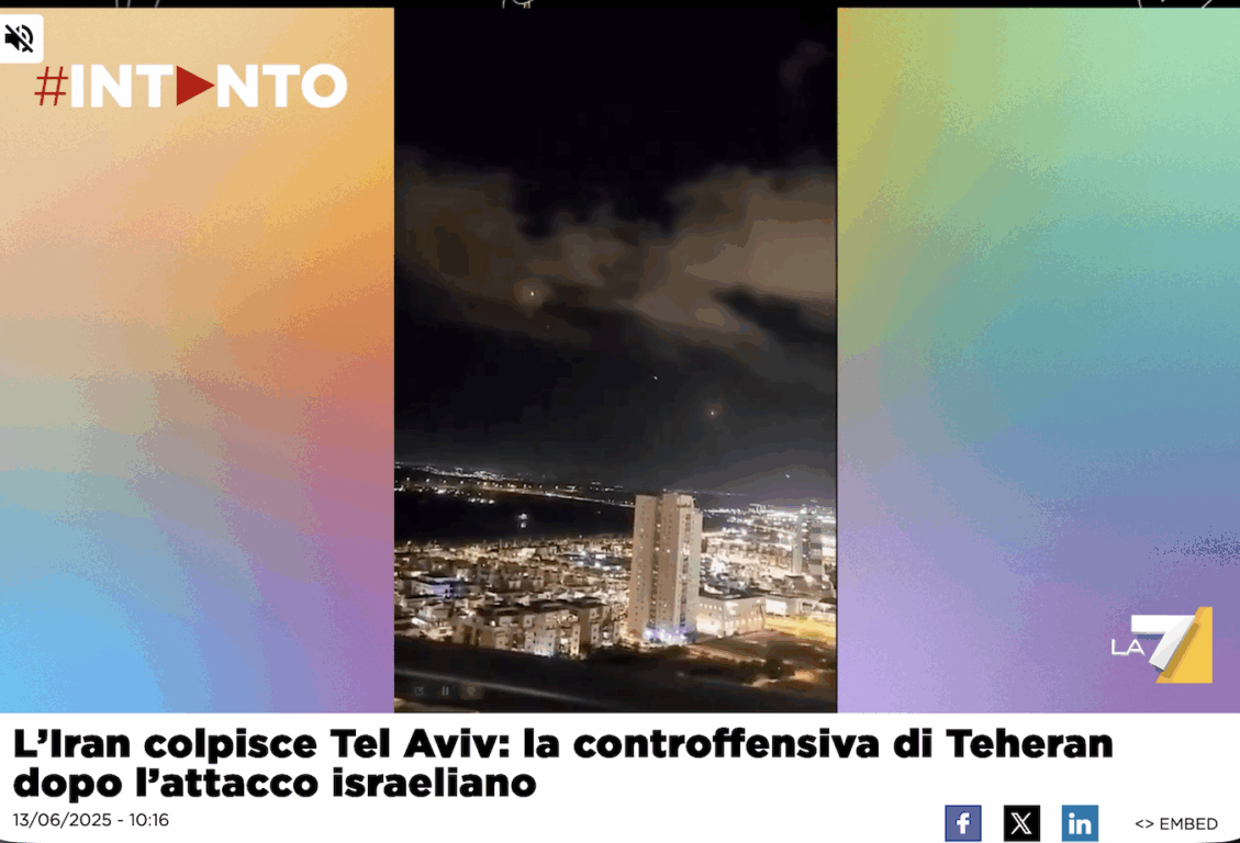 - La clip però riguarda un attacco iraniano contro Tel Aviv risalente al giugno 2025.