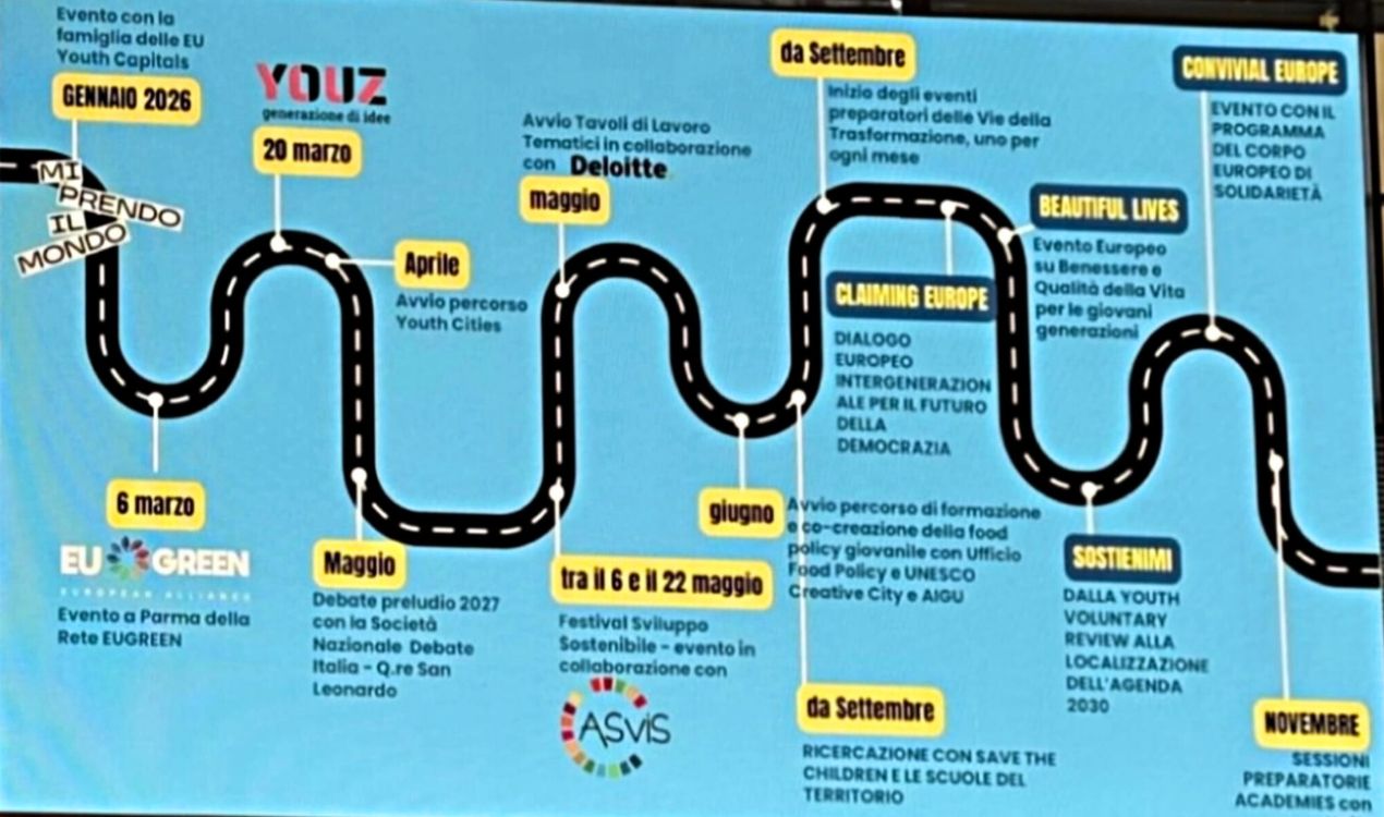 Il titolo Capitale europea dei giovani, conferito dallo European Youth Forum, nasce proprio con l’intento di valorizzare il protagonismo giovanile, stimolare la partecipazione e restituire e ricostituire gli spazi nelle città. Ogni anno una nuova capitale porta sul tavolo le proprie idee e sperimenta politiche capaci di dare voce alle nuove generazioni. Parma ha conquistato il 2027 grazie a un dossier che l’ha vista emergere come unica città italiana tra le cinque finaliste, superando Chișinău, Fuenlabrada, Málaga e Skopje.