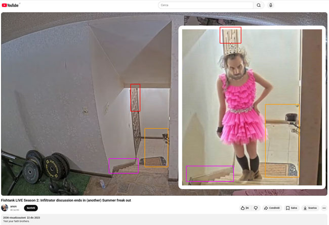 La foto attribuita a Pretti, quella dove indosserebbe un vestito da donna color rosa, mostra in realtà un’altra persona. Come verificato dai colleghi di LeadStories, Si tratta di Benjamin Taylor (“Ben Taylor”), creatore del reality shof Fishtank. In questo fotogramma dello show è possibile riscontrare che la scena è stata ritratta nello stesso posto.