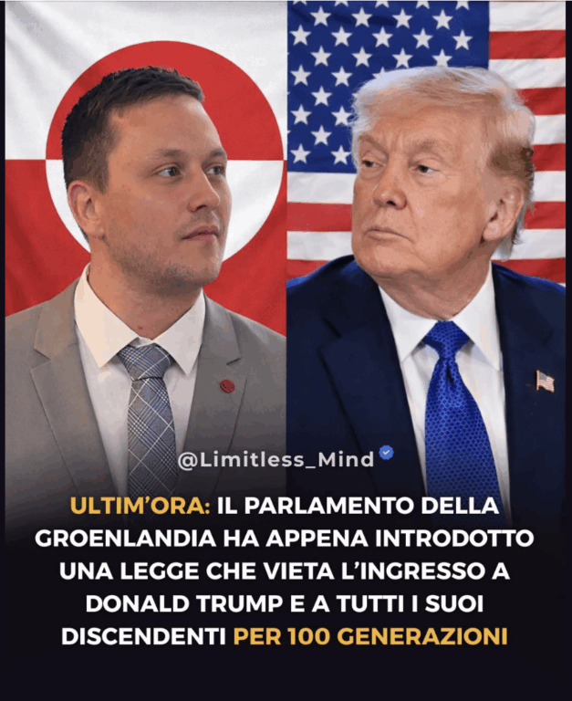 «ULTIMA ORA: Il parlamento della Groenlandia ha appena presentato una legge che mette al bando Donald Trump e tutti i suoi discendenti per 100 generazioni».
