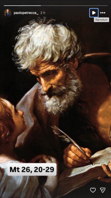 Poche ore dopo la nota ufficiale della Rai, Petrecca non ha rilasciato alcuna dichiarazione ufficiale, limitandosi a una criptica storia pubblicata su Instagram. L’immagine mostra un dipinto dell’apostolo Matteo, con riferimento ai versetti del Vangelo 26, 20-29. La scena che evoca il direttore dimissionario di Rai Sport è una delle più iconiche della Bibbia, quella in cui Gesù – durante l’Ultima cena – annuncia agli apostoli: «In verità io vi dico, uno di voi mi tradirà».