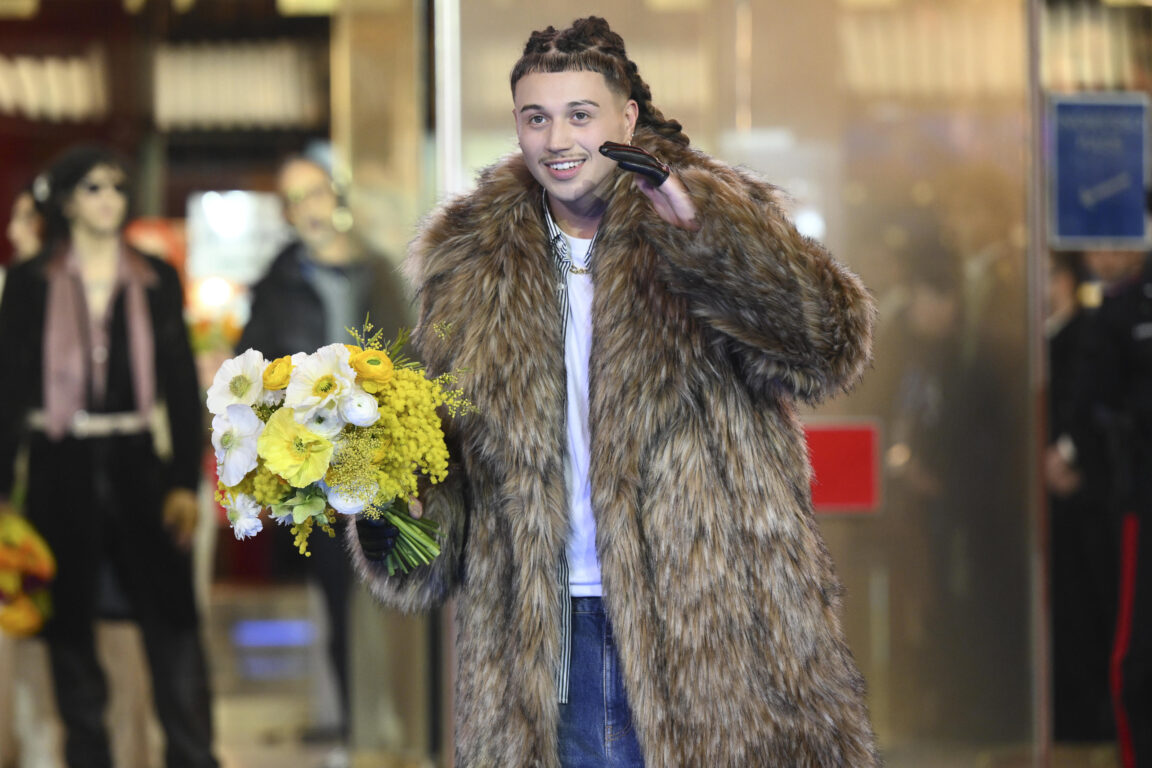 Tailleur doppiopetto rigato marrone e cravatta in pelle per Sayf, terzo artista in gara al Festival di Sanremo, che sale sul palco con un solo anello. Nelle ore precedenti si era acceso il dibattito sui social per i gioielli sfoggiati sul green carpet: una collana, due orecchini e un bracciale appartenenti a una collezione Tiffany Titan firmata da Pharrell Williams, pezzi di grande valore – oltre 70 mila euro – anche se in parte nascosti da una voluminosa pelliccia.
