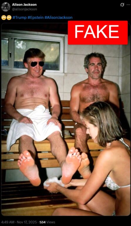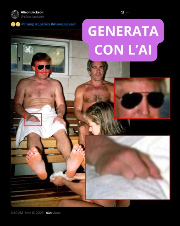 Trump ed Epstein in una sauna con una minore? Perché la foto del lavapiedi è un falso generato dall’AI