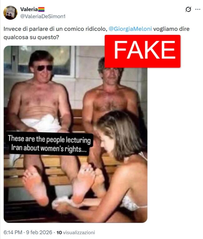 L’immagine è iniziata a circolare da febbraio 2026, dopo la pubblicazione di milioni di file legati all’inchiesta su Jeffrey Epstein.