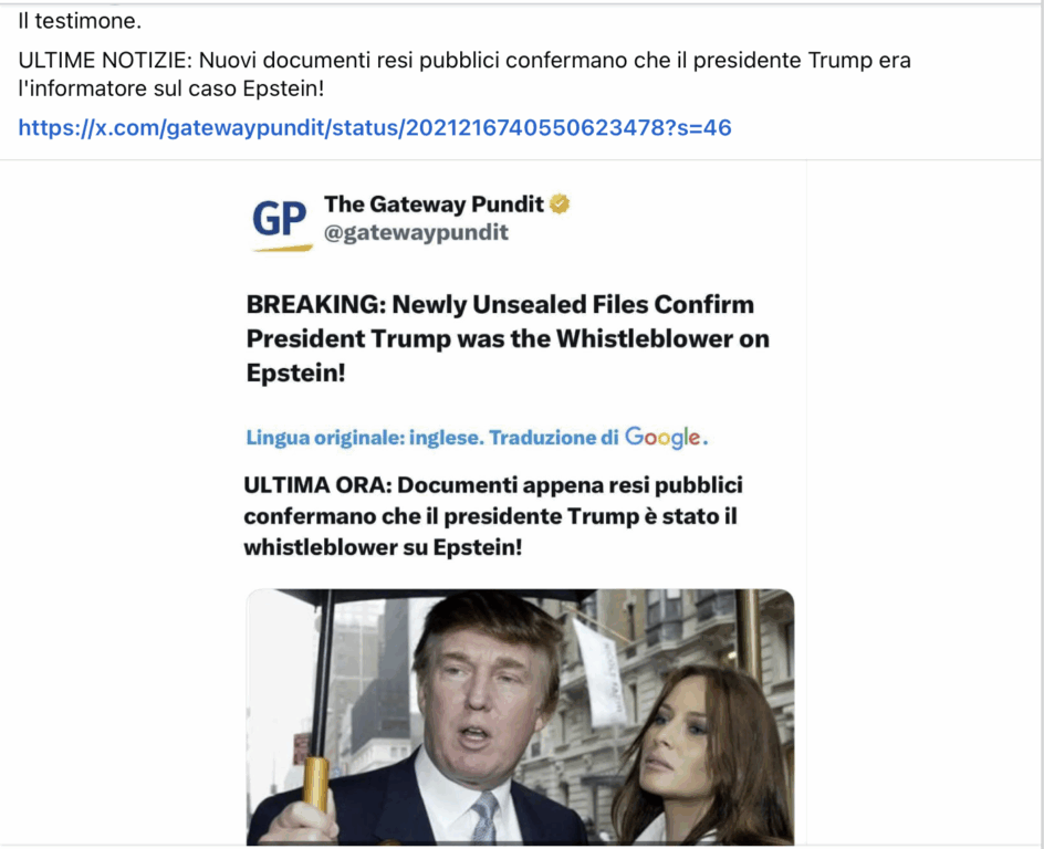 Proseguono i tentativi di ridimensionare i rapporti di Donald Trump con Jeffrey Epstein, alla luce di quanto sta emergendo negli Epstein files, diverse persone che hanno investito tempo ed energie per sostenere la causa del leader MAGA, ora per dissonanza congnitiva devono trovare compensi. È forse il caso delle condivisioni Facebook che rilanciano una vecchia narrazione, quella di Trump come primo «whistleblower» dei crimini di Epstein.