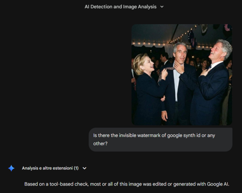 Questa foto di Hillary e Bill Clinton con Epstein è stata generata con l’AI