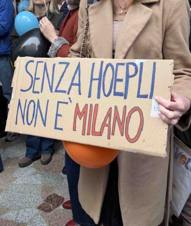 Le note di La libertà di Giorgio Gaber risuonano in via Hoepli, a Milano, mentre, sotto la pioggia, centinaia di persone sono radunate davanti all’ononima libreria per un flash mob contro la decisione della società di liquidare la casa editrice e chiudere il negozio. La decisione, maturata nelle scorse settimane, arriva dopo un periodo di difficoltà economiche e tensioni interne alla proprietà. La sua chiusura è stata recepita da molti come un campanello d’allarme per l’intero settore. Come commenta Alice Piciocchi, titolare di NOI libreria, «Se chiude un gigante del genere è come se venisse meno una colonna portante dell’edificio culturale milanese. Mi fa sentire più fragile e ricorda che questa liquidazione non è un caso isolato, ma un rischio che riguarda anche molte librerie indipendenti». C’è tristezza anche nelle parole di un’altra libraia, Elena Battaglia della libreria l’Accademia: Per la città di Milano Hoepli è un’istituzione storica, un po’ come i panzerotti di Luini».