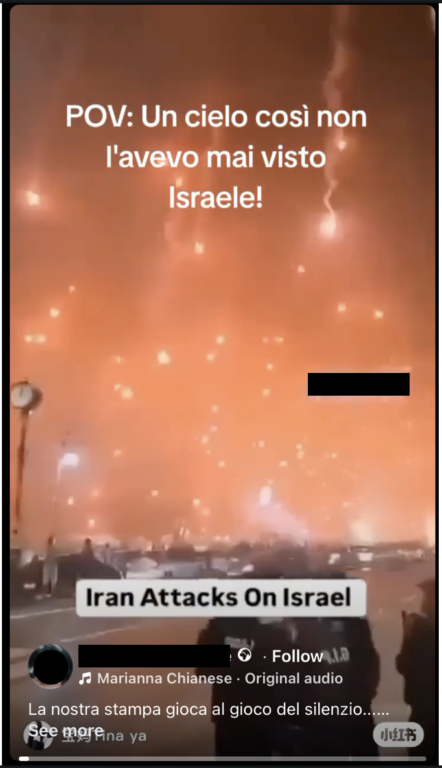 Una clip che mostra delle sfere infuocate cadere dal cielo viene associata agli attacchi dell’Iran contro Israele.