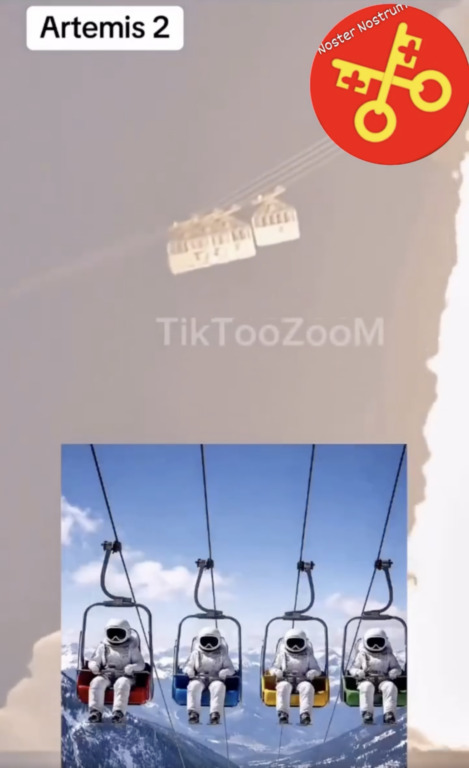 Le condivisioni in oggetto enfatizzano il tutto suggerendo che a bordo della funivia vi sarebbero stati i quattro astronauti di Artemis II: