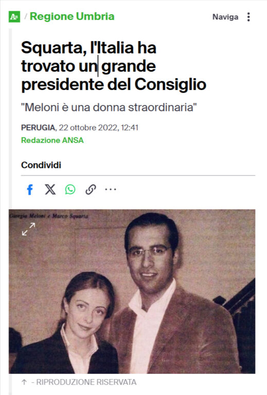La fotografia era stata pubblicata da Ansa in un articolo del 2022 intitolato “Squarta, l’Italia ha trovato un grande presidente del Consiglio”. Lo stesso Squarta è intervenuto, attraverso i propri account social, per denunciare l’opera di disinformazione.