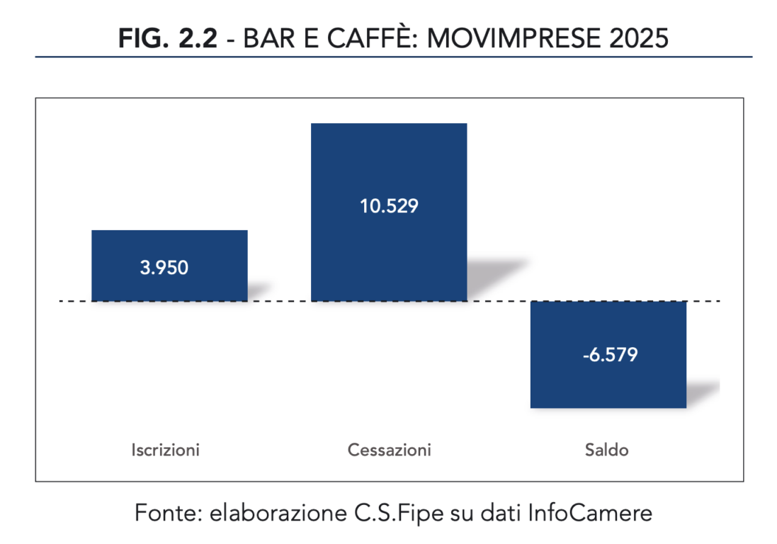 Non si tratta però solo di chiusure, come racconta a Open Luciano Sbraga, responsabile del Centro Studi FIPE: il dato va letto anche come trasformazione interna del settore. «Non tutte le chiusure sono reali. In molti casi il bar non sparisce, ma cambia pelle e diventa altro». Il riferimento è al fenomeno del bar tradizionale che si sta progressivamente spostando verso modelli più ibridi, perché servire solo la colazione non è più sufficiente a mantenere attiva l’attività. È quella che il Rapporto definisce la «crisi invisibile», cioè una contrazione apparente che nasconde una profonda ristrutturazione del settore.