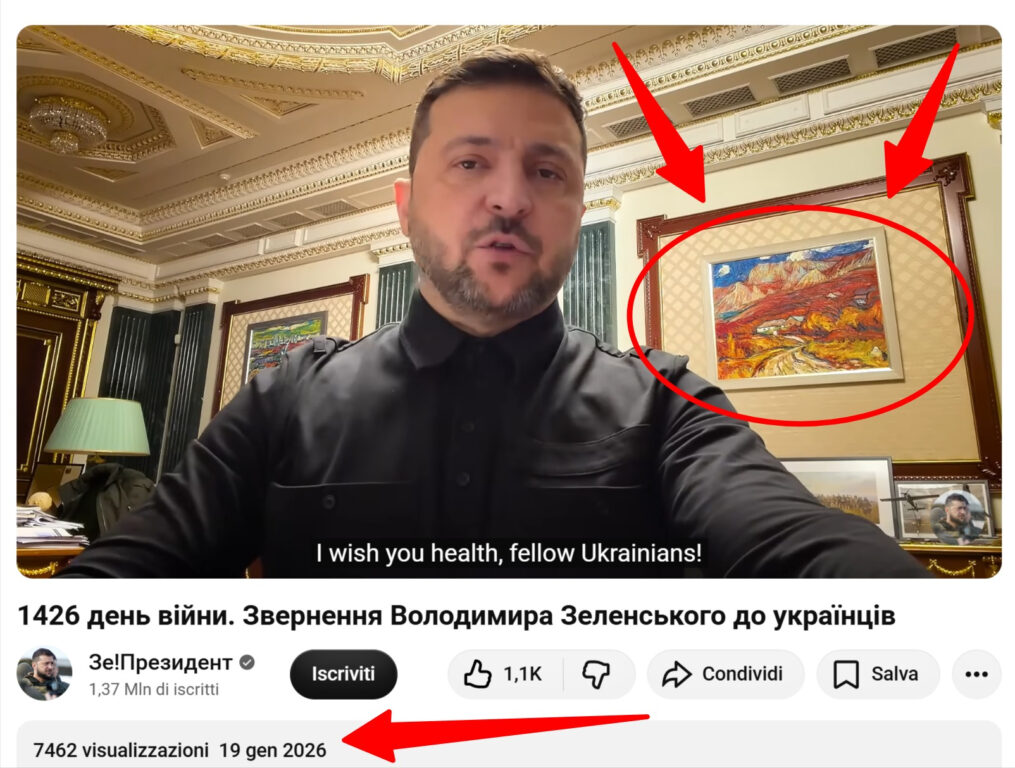 - Il video originale di Zelensky risale al 19 gennaio 2026, mentre il furto dell’opera è avvenuto a fine marzo 2026.