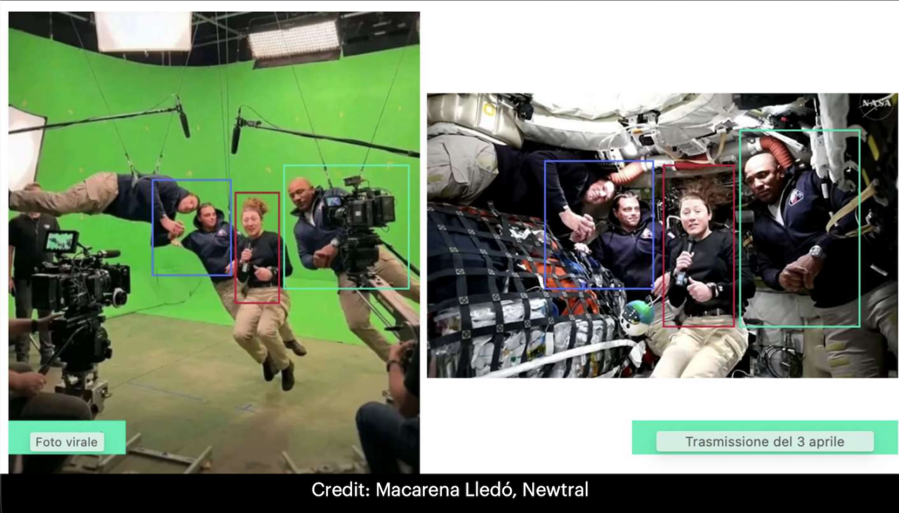 La collega Macarena Lledó è risalita per Newtral alla fonte originale. L’immagine risulta essere un fotogramma tratto dalla diretta trasmessa dalla NASA con l’equipaggio in viaggio dentro la Orion.