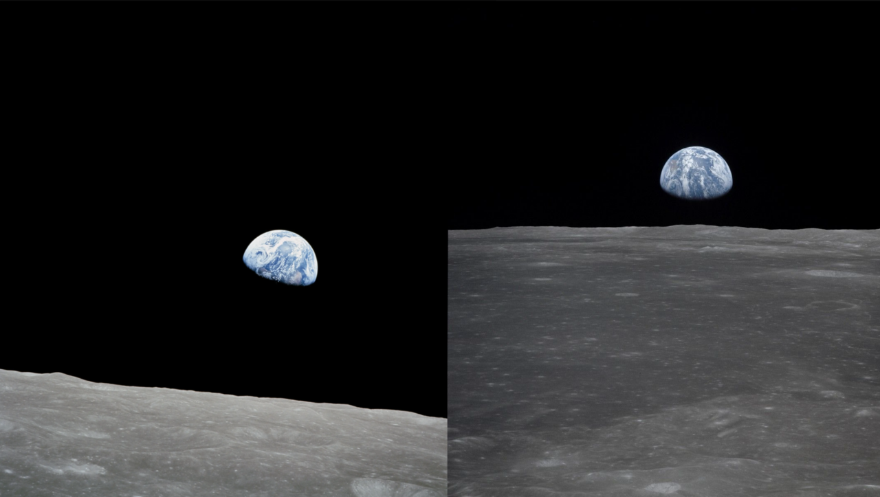 Per altro la prima immagine a sinistra non proviene dalla missione Apollo 8 (potete vedere l’originale qui), bensì da Apollo 11, del 1969 (la trovate qui):