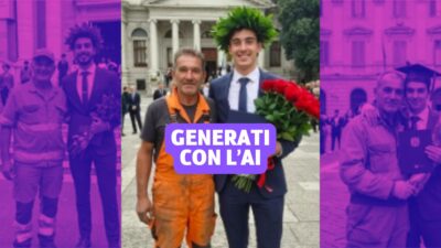 La foto del padre netturbino alla laurea del figlio è l’ennesimo caso di sbobba artificiale