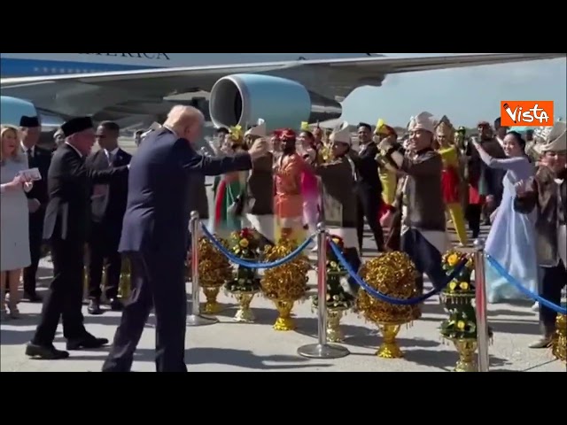 Trump balla all'aeroporto di Kuala Lumpur con ballerini tradizionali al suo arrivo in Malesia – Il video