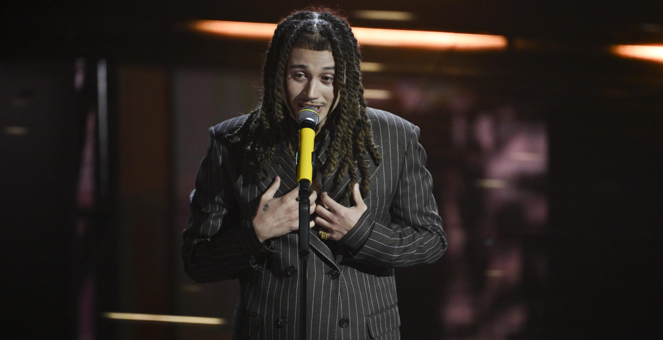 L’artista in un punto stampa con i giornalisti replica al concorso di bellezza: «Mi sembra assurdo parlare di un testo che non è uscito»