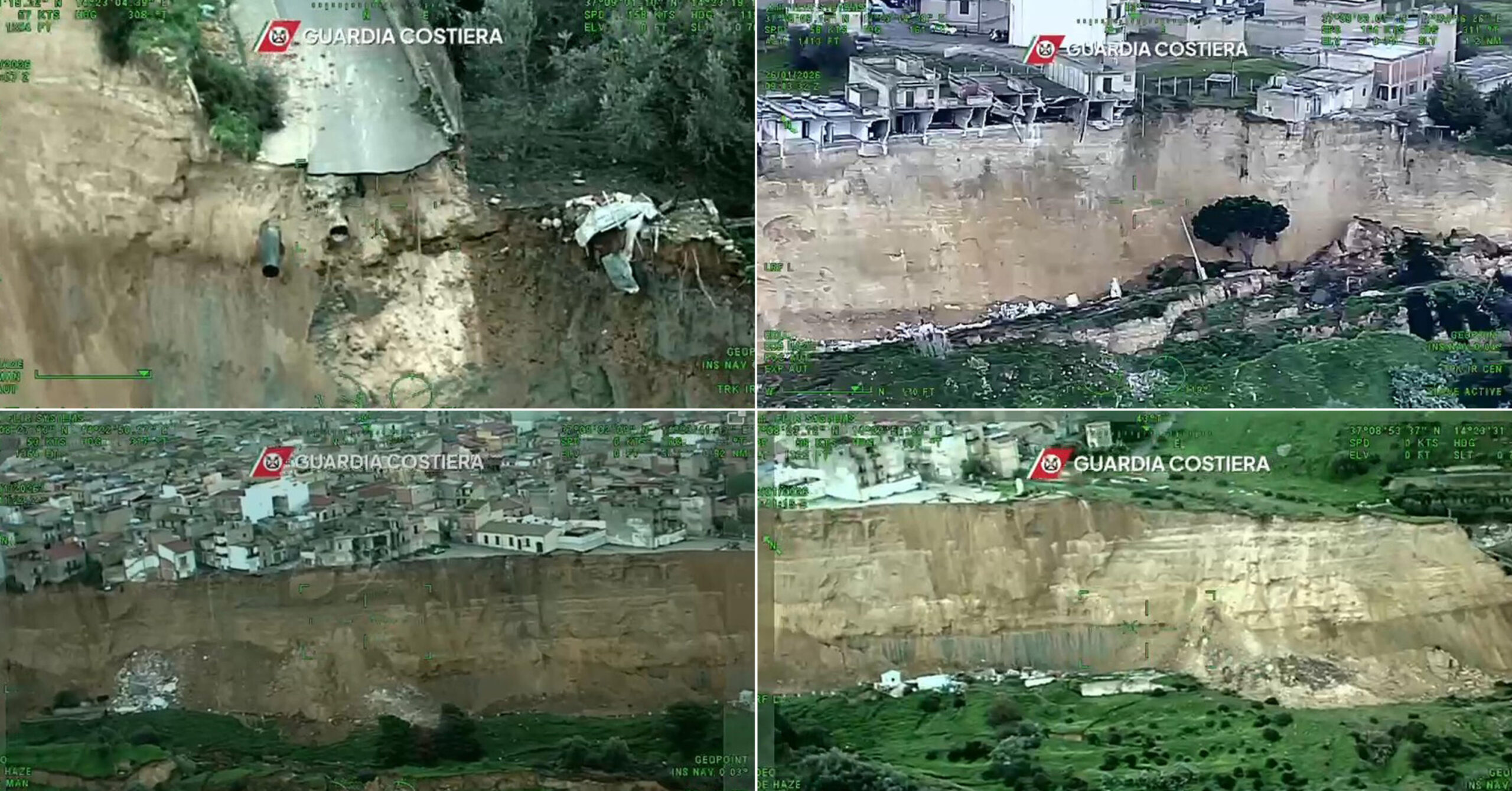 Giorgia Meloni a Niscemi, il sorvolo in elicottero delle zone colpite dal maltempo. Schifani: «C’è un paese che rischia di crollare in un vuoto enorme»