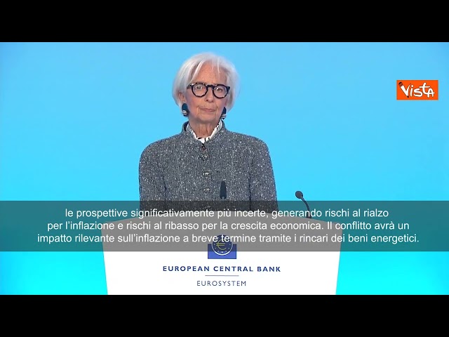 Secondo le nuove stime, l’inflazione dovrebbe attestarsi al 2,6 per cento nel 2026. Lagarde: «Situazione differente rispetto al conflitto in Ucraina»